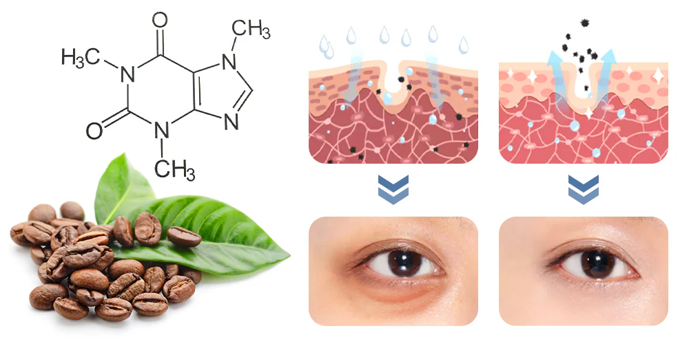 Caffeine not only wakes you up at midnight but also works on the eye area by temporarily constricting the blood vessels.
