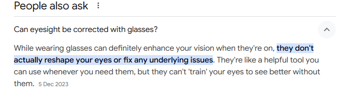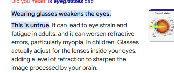 Below is Google evidence that prolonged eyeglasses without attending to the root cause is bad for you