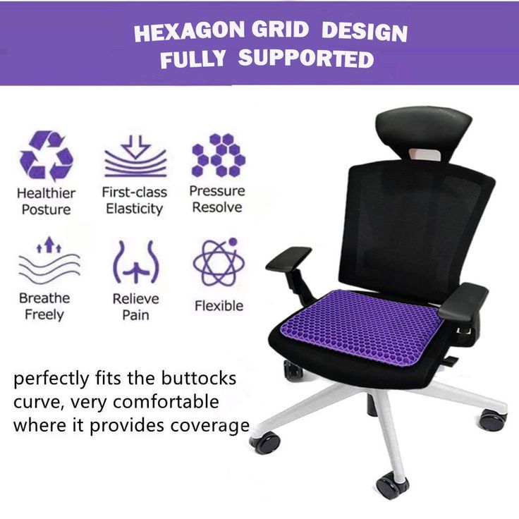 This ergonomic gel seat cushion is designed to distribute weight evenly and support comfortable sitting throughout the day.