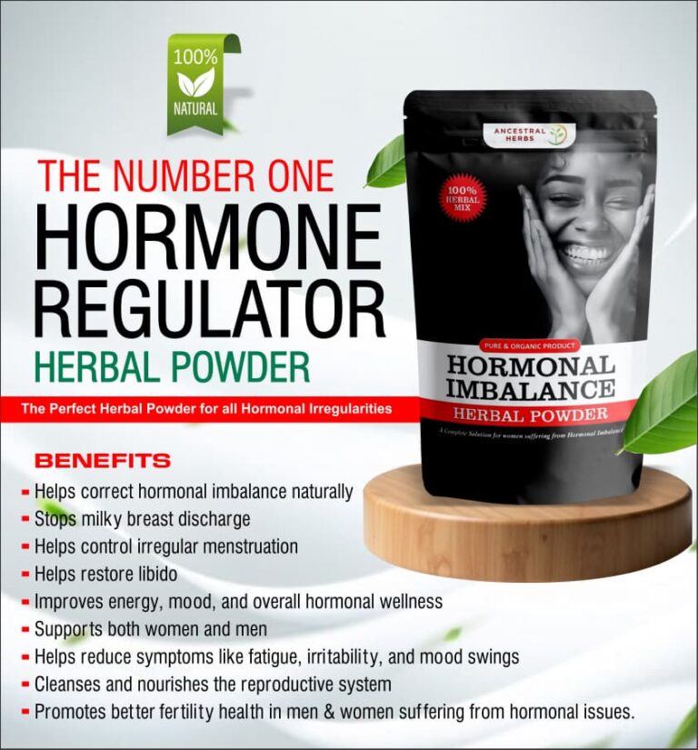 JUST 1 SACHET OF THIS HERBAL ORGANIC POWDER DAILY,CAN HELP REGULATE AND CORRECT YOUR HORMONES, MAKE YOU FREE FROM THOSE HORMONAL IMBALANCE SYMPTOMS IN 60-90 DAYS.